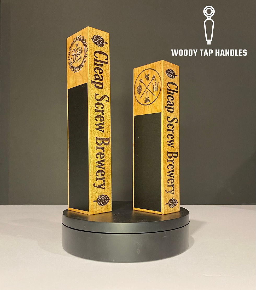 The Maple Sisters are a wonderful centerpiece for any taproom; the sides of the tap handle are laser engraved with your home brewery name with a Hop surround it. We have a few different options for the front engraving or your company logo. Add a chalkboard sticker to the front or leave it "oh natural."